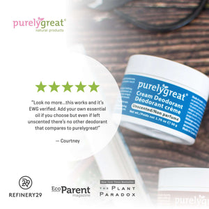 Look no more…this works and it’s EWG verified. Add your own essential oil if you choose but even if left unscented there’s no other deodorant that compares to purelygreat!